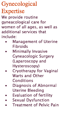We are committed to providing a private practice in gynaecology and women's healthcare that is comprehensive, state of the art, holistic and patient-friendly.